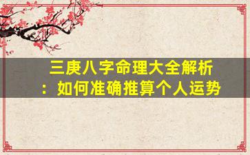 关于“三庚八字”命理的分析和运势推算,中国传统命理学(四柱八字)中确有“三庚”的说法,但需注意其实际应用需结合完整的八字格局。以下是系统性的解析:
