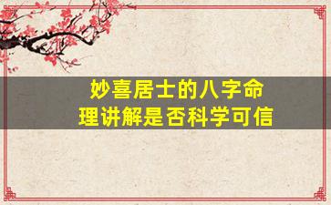 关于“妙喜居士的八字命理讲解是否科学可信”的问题,可以从以下几个角度理性分析: