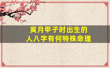 根据八字命理学,寅月甲子时出生的人,其命理特点需结合年、日的干支综合分析,但仅从月柱(寅月)和时柱(甲子)可以初步推断以下特征: