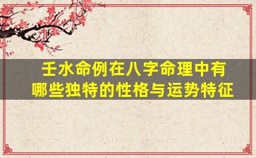 在八字命理中,壬水属阳水,象征江河湖海,具有奔腾不息、自由流动的特性。壬水命人(日主为壬水)的性格与运势往往带有鲜明的水性特质,同时受八字中其他五行生克制化的影响,会展现出不同的层次。以下是壬水命例的典型特征分析: