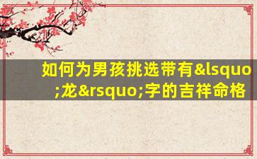 为男孩挑选带有“龙”字的吉祥名字时,需结合传统文化、五行生克、音形义美等要素。以下是一套系统化的命名建议: