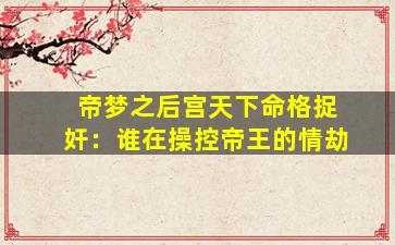 关于“帝梦之后宫天下命格捉奸:谁在操控帝王的情劫”这一主题,可以结合宫廷权谋、命格宿命和情感纠葛展开深度创作。以下是一个故事框架和核心设定,供参考: