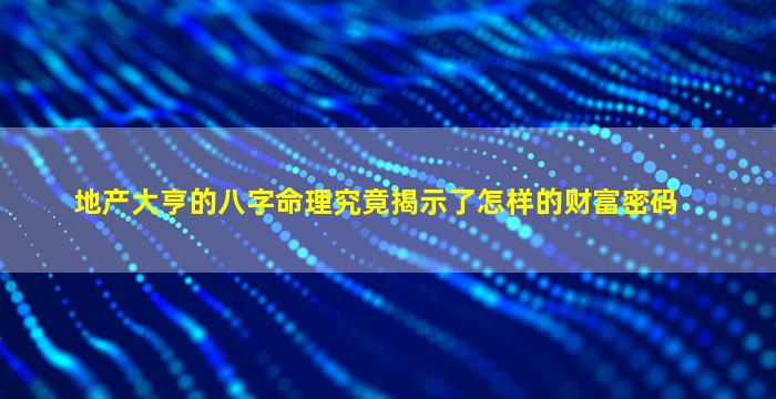 关于地产大亨的八字命理与财富密码的关系,中国命理学(尤其是四柱八字体系)常通过分析个人出生时间对应的五行生克、十神组合等来推测其命运轨迹。尽管命理分析并非科学验证的财富公式,但可以从传统文化视角探讨一些常见模式。以下是一些可能被关注的命理特征: