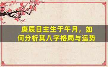 分析庚辰日主生于午月的八字格局与运势,需结合五行生克、月令特点及十神配置综合判断。以下是具体分析框架: