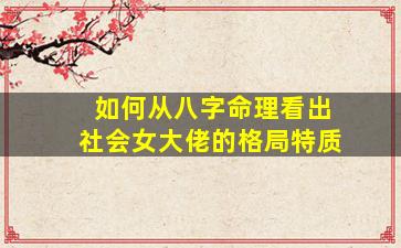 从八字命理角度分析"社会女大佬"(指在事业、社会地位或权力层面有显著成就的女性)的格局特质,通常需重点关注命局中的五行气势、十神组合、特殊格局以及用神力量。以下是具体的分析框架和特征: