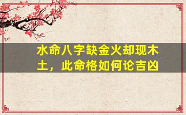 在八字命理中,分析“水命八字缺金火却现木土”的吉凶需结合五行生克、十神配置及命局整体平衡来综合判断。以下是具体分析思路: