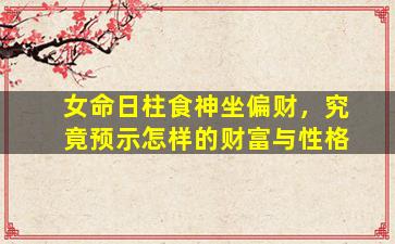 在八字命理中,“女命日柱食神坐偏财”是一种特定的组合,主要反映个人的财富机遇、性格特质以及行为模式。以下是具体分析: