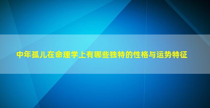 在命理学(如八字、紫微斗数等体系)中,"中年孤儿"(指父母早逝或亲情缘薄的中年人)的运势与性格特征通常与特定的命盘配置相关。以下是从传统命理学角度的一些可能特征,供参考: