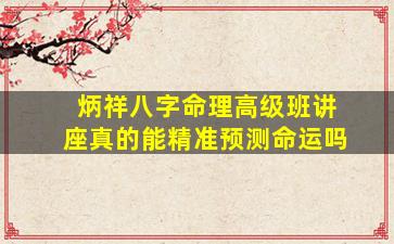 关于“炳祥八字命理高级班讲座”或其他命理预测课程是否能精准预测命运,需要从科学、传统文化及个人认知等多个角度理性看待: