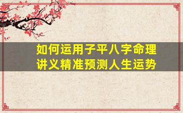 运用子平八字(四柱命理)精准预测人生运势,需系统掌握其理论基础和分析方法,并结合实际经验灵活应用。以下是关键步骤和要点: