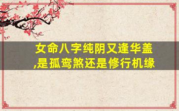 关于女命八字纯阴又逢华盖的命理分析,需结合具体八字结构和命理学原理综合判断,不可简单归类为孤鸾煞或修行机缘。以下从不同角度解析: