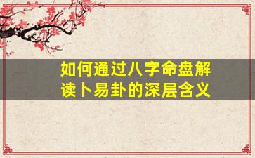 通过八字命盘解读《卜易卦》的深层含义,本质上是将命理学与易经占卜相结合,形成一种综合性的命运分析体系。以下是具体的方法和逻辑框架:
