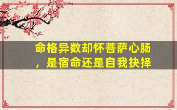 这句话探讨了一个颇具哲学深度的问题:当一个人的内在本质(如命格异数)与外在行为(如菩萨心肠)看似矛盾时,这种矛盾究竟是命运的安排还是个人选择的结果?以下从几个维度展开解析: