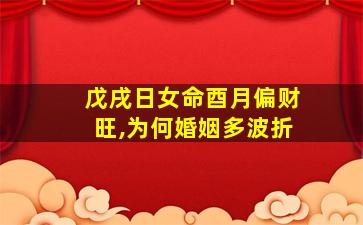 在八字命理中,女命婚姻的吉凶需综合夫妻宫、官杀星(夫星)、五行生克及十神配置来分析。就“戊戌日女命酉月偏财旺,婚姻多波折”这一问题,可从以下几个方面解读:
