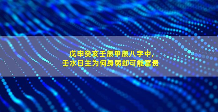 在八字命理中,日主身弱却可能富贵的情况通常需要结合全局的五行生克、十神配置及大运流年等因素综合分析。对于“戊申 癸亥 壬辰 甲辰”这一八字,壬水日主身弱却可能富贵的原因可以从以下几个角度理解: