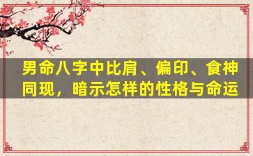 在八字命理中,比肩、偏印、食神同现于男命的格局,会形成一种复杂而多变的性格与命运特征。以下是具体的分析: