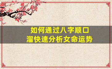 通过八字顺口溜快速分析女命运势,可以结合五行生克、十神特点和命局组合,将复杂命理知识简化为易记的口诀。以下是一些常用的顺口溜和分析思路: