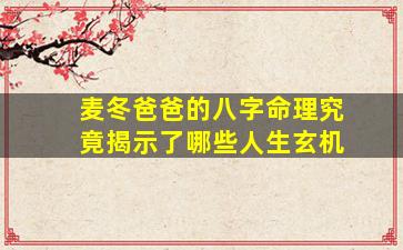 关于“麦冬爸爸的八字命理分析”,由于缺乏具体的出生时间(年、月、日、时),无法进行精准排盘和解读。不过,我可以从八字命理学的通用逻辑出发,为你提供一些可能的分析方向,并解释如何通过八字揭示人生玄机: