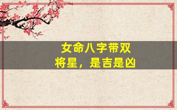 在八字命理中,"将星"是一颗代表领导力、权威和魄力的神煞,通常被视为吉星。对于女命八字中带有"双将星"(即八字中出现两个将星),其吉凶需要结合整体命局来分析,不能一概而论。以下是综合分析要点: