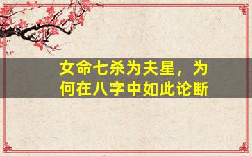 在八字命理中,“女命七杀为夫星”的论断源于传统命理学对十神关系的解读,其逻辑与阴阳五行、社会伦理及古代性别观念密切相关。以下从多角度解析这一论断的成因和内涵: