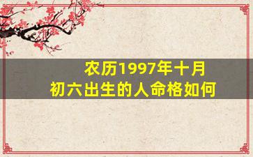 根据中国传统命理学(八字算命),一个人的命格需要结合出生年、月、日、时的天干地支(共八个字)来综合分析。由于您提供的资料缺少具体出生时间(时辰),以下为1997年十月初六(公历1997年11月5日)的 基础命盘分析,供参考: