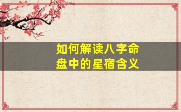 解读八字命盘中的星宿含义需要结合中国传统命理学的核心理论,包括天干地支、五行生克、十神关系以及神煞系统等。以下是分步骤的详细解读方法: