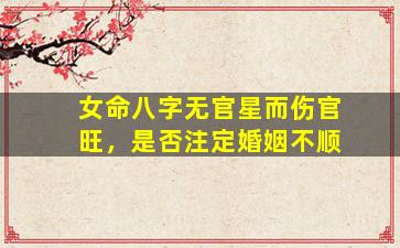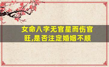 关于“女命八字无官星而伤官旺是否注定婚姻不顺”的问题,需从八字命理的基本逻辑和现实角度综合分析,不能一概而论。以下是专业层面的解读: