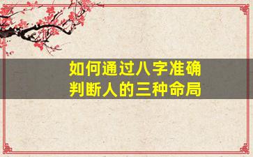 通过八字(四柱命理)判断人的三种命局(通常指富、贵、贫或天、地、人三才命局),需要综合考量八字中的五行生克、十神配置、格局高低以及大运流年的影响。以下是系统的分析方法: