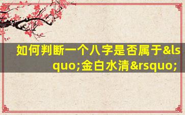 判断一个八字是否属于“金白水清”格局,需结合五行生克、十神配置及干支特点综合分析。以下是具体的判定步骤和要点: