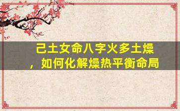 在八字命理中,己土日主若火多土燥,确实容易导致命局失衡,表现为性格急躁、健康易患上火、皮肤干燥、事业多阻碍等问题。化解的核心在于 "调候用神",具体方法如下: