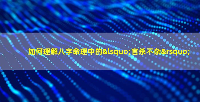 在八字命理中,“官杀不杂”是一个重要概念,主要涉及十神中“正官”与“七杀”(偏官)的纯粹性与平衡性。以下是详细解析: