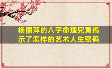 杨丽萍的八字呈现「以水木为体,土金为用」的配置,本质是借自然之力(水木)表达人性之美。其艺术成功的关键在于: