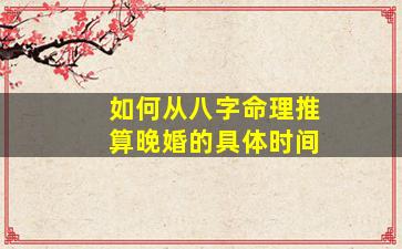 从八字命理推算晚婚的具体时间,需结合命局特征、大运和流年的互动关系综合分析。以下是具体步骤和关键点: