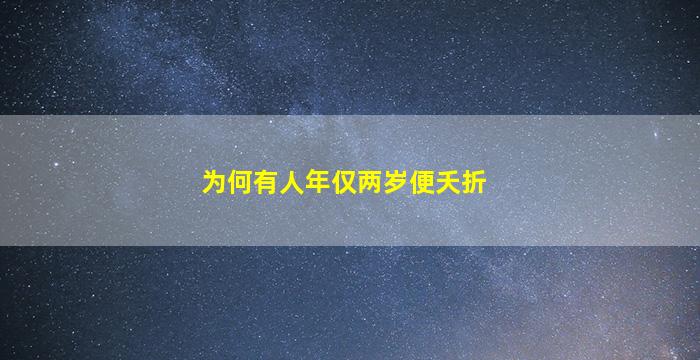 年幼儿童夭折是一个令人痛心的现象,其背后可能涉及多种复杂的医学、环境和社会因素。以下是一些可能的原因及背景信息,需注意每个案例的具体情况可能不同: