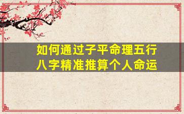 通过子平命理(八字命理)推算个人命运,是中国传统命理学的核心方法之一,其理论基础是阴阳五行与天干地支的生克关系。以下是系统化的推算步骤和关键要点: