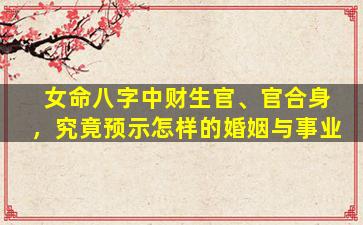 在八字命理中,“财生官、官合身”是女命格局中与婚姻、事业密切相关的组合,其具体影响需结合八字整体结构分析,但可出以下普遍规律: