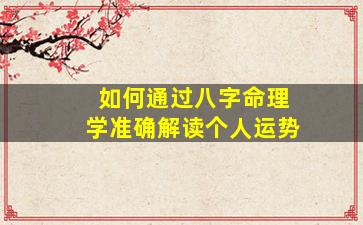 通过八字命理学(四柱预测)解读个人运势,需结合天干地支、五行生克、十神关系及大运流年等要素进行系统分析。以下是核心步骤和要点: