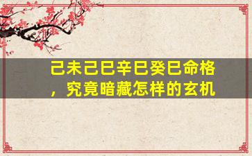 您提供的八字命盘为:己未 己巳 辛巳 癸巳(对应阳历1979年5月22日或2019年5月12日等,需结合具体出生时间确认)。以下从专业命理角度解析其潜在玄机: