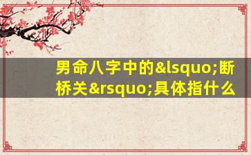 “断桥关”是传统八字命理中的一种神煞关煞,主要流行于民间命理体系,尤其在《小儿关煞》中常被提及,多用于分析儿童时期的运势吉凶。对于男命八字中的“断桥关”,其具体含义和影响如下: