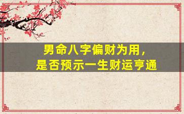 在八字命理中,偏财为用神确实对财运有积极影响,但能否达到“一生财运亨通”的程度,还需结合八字整体格局、五行生克、大运流年等因素综合判断。以下是具体分析: