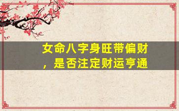 在八字命理中,"身旺带偏财"确实是财运较佳的一种组合,但所谓"注定财运亨通"还需结合全局分析,不可单凭一两个要素定论。以下是关键要点: