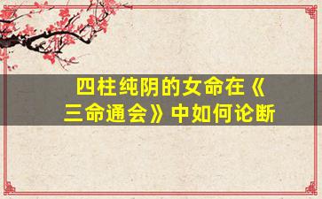在《三命通会》中,关于“四柱纯阴”女命的论断需结合阴阳五行、十神配置及命局平衡综合分析。以下是传统命理中的主要观点: