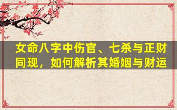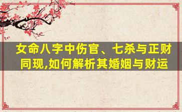 在八字命理中,女命八字同时出现伤官、七杀与正财,需结合十神特性和五行生克关系综合分析婚姻与财运。以下为具体解析思路: