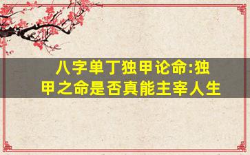 关于“八字单丁独甲论命”以及“独甲之命”是否真能主宰人生的问题,可以从传统命理学和现实角度综合分析如下: