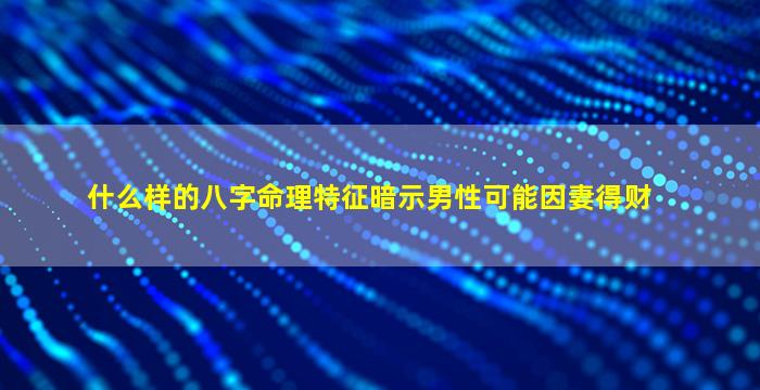 在八字命理中,男性是否可能“因妻得财”(即通过配偶获得财富或资源),主要需分析命局中 财星 与 日主、夫妻宫 的关系,以及五行生克和十神配置。以下是关键特征: