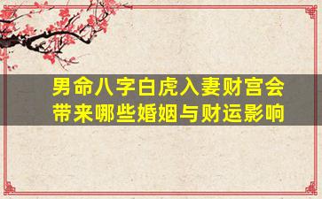 在八字命理中,"白虎"是四柱神煞之一,通常象征意外、刑伤或突发变故。若男命八字中出现"白虎入妻财宫"(即白虎星位于日支妻宫或正偏财星所在的宫位),需结合具体八字结构综合判断,但通常可能带来以下潜在影响: