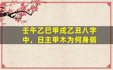 在八字命理中,日主甲木身弱的原因需结合四柱干支的生克关系及五行能量来分析。以下针对“壬午 乙巳 甲戌 乙丑”这一八字的具体解析: