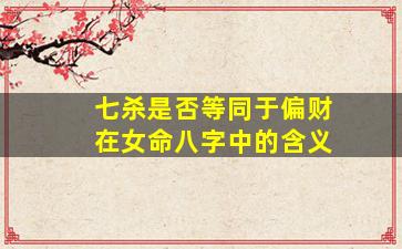 在八字命理中,"七杀"和"偏财"是两种不同的十神概念,对女命的影响也各有侧重,二者不能简单等同。以下是具体分析: