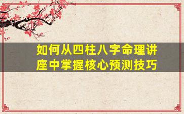 要从四柱八字命理讲座中掌握核心预测技巧,需要系统性地学习基础理论、分析逻辑和实战方法。以下是具体步骤和建议: