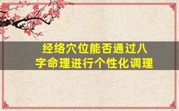 关于“经络穴位能否通过八字命理进行个性化调理”的问题,需要从中医理论和命理学两个角度综合分析,同时需注意现代科学视角的局限性。以下是分点阐述:
